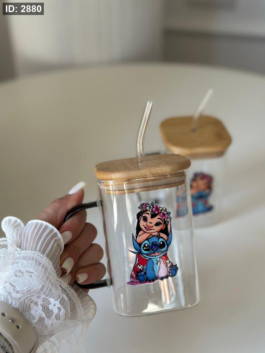كاسة شفاف ايس كوفي ستيتش & ليلو طوق ورد