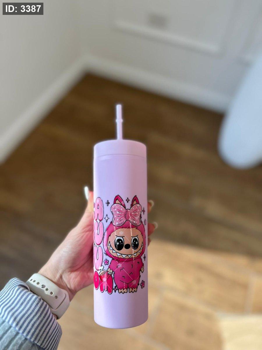 مطرة بلاستيك مع مصاصه لابوبو / زهري