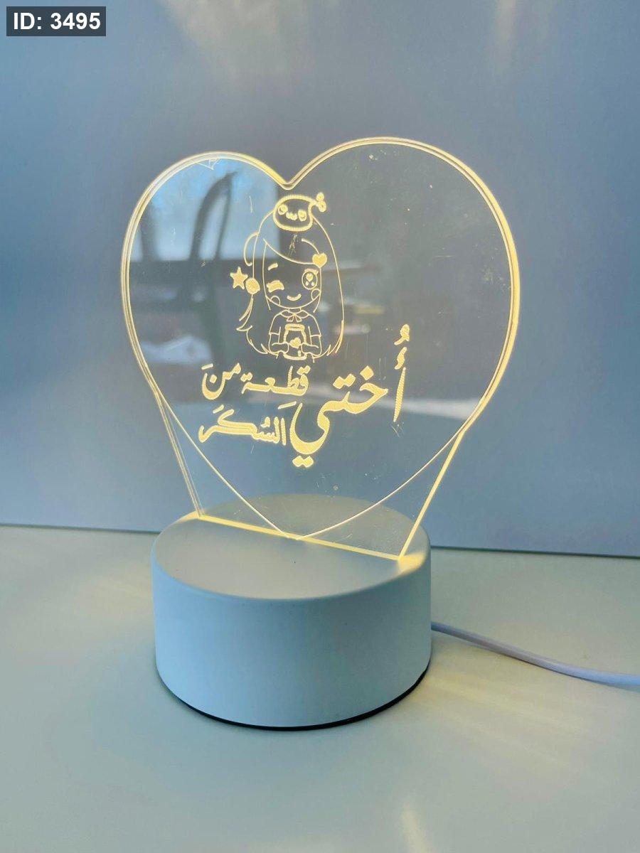 قاعدة مضيئه عبارة ( أختي قطعه من السكر )