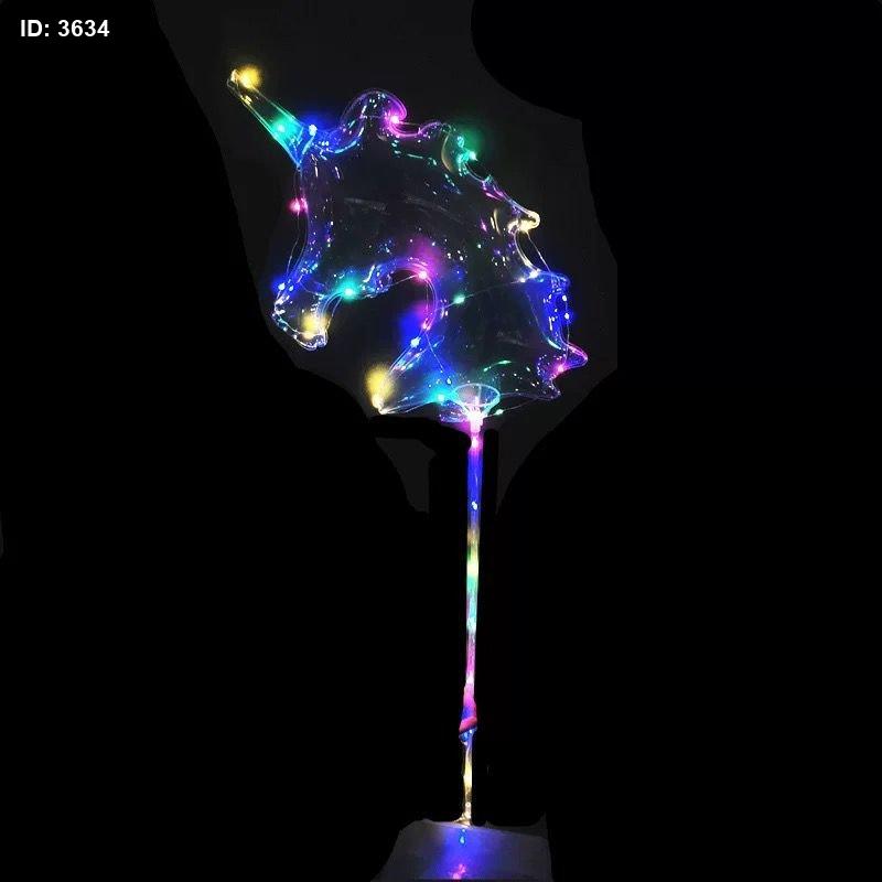 بالون شفاف مع إضاءة وعصا حصان (يوني كورن)
