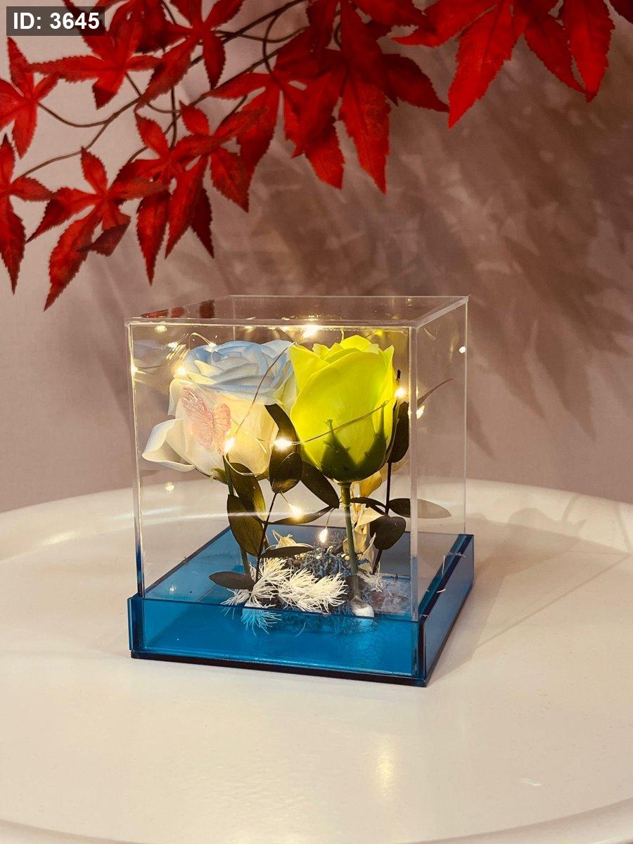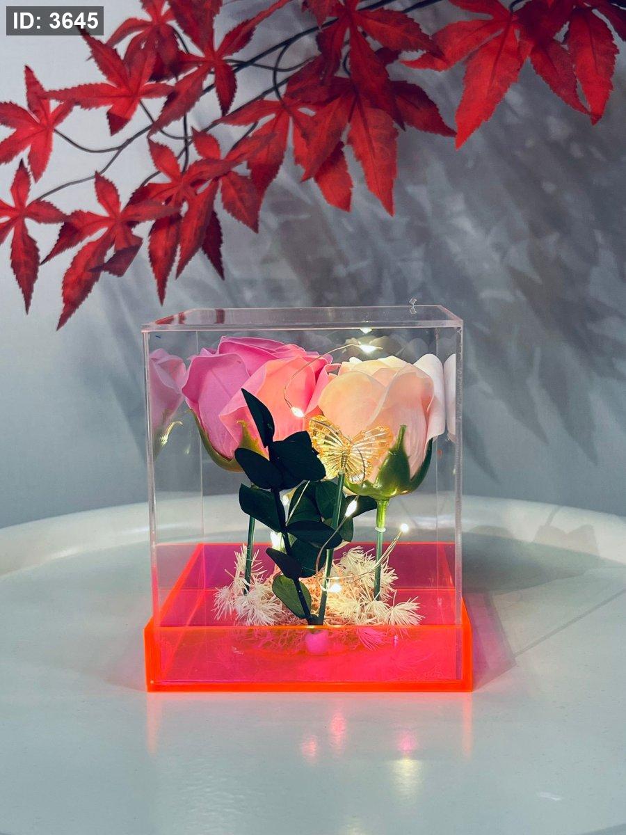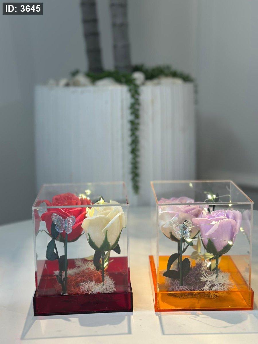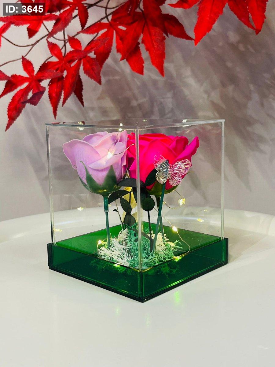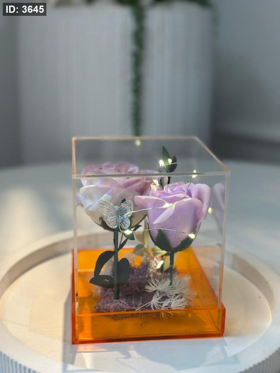 تحفة زجاج بوكس مربع ورد