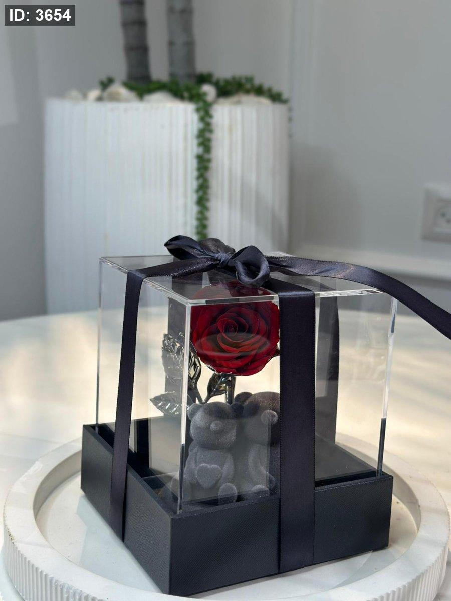 تحفة زجاج مربعه دبين رمادي مع باقة ورد