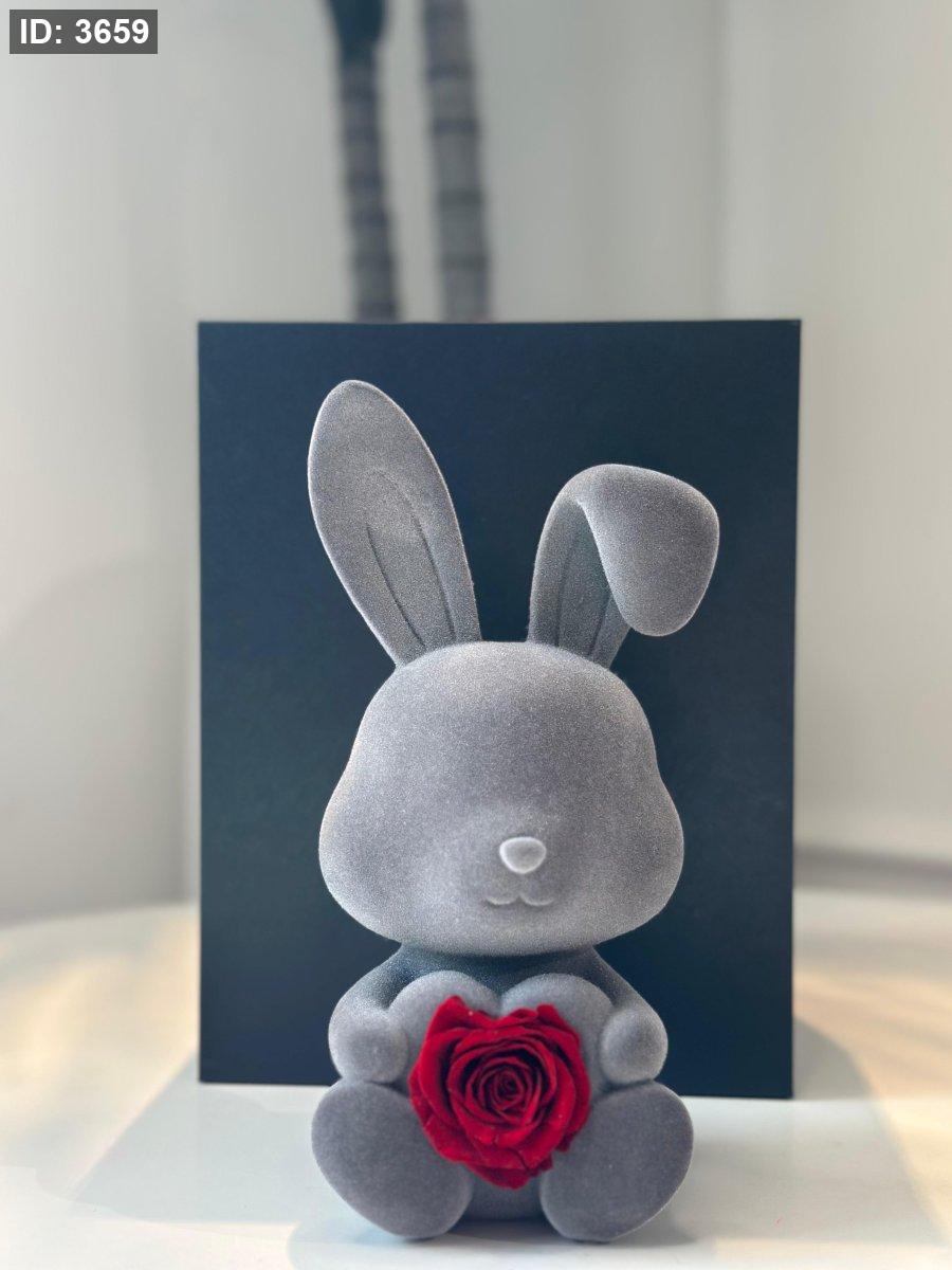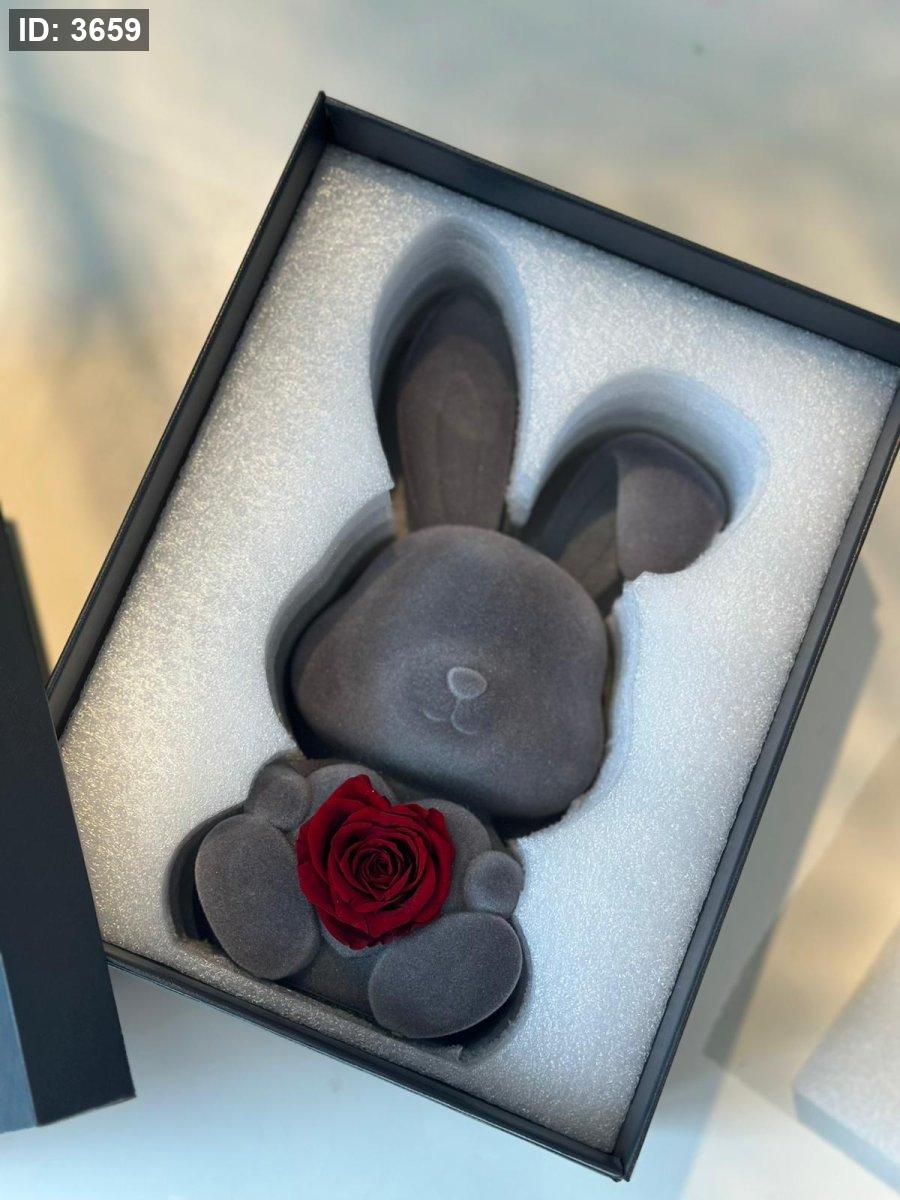 تحفة أرنب رمادي كبير حامل ورد قلب بعلبة كرتون