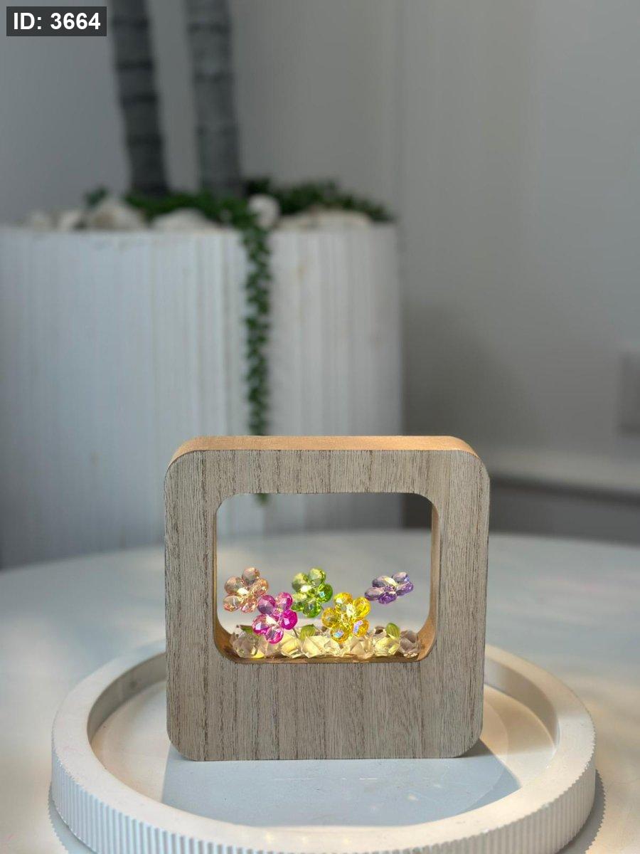 تحفة خشبيه وردة كريستال مضيئه مربعه