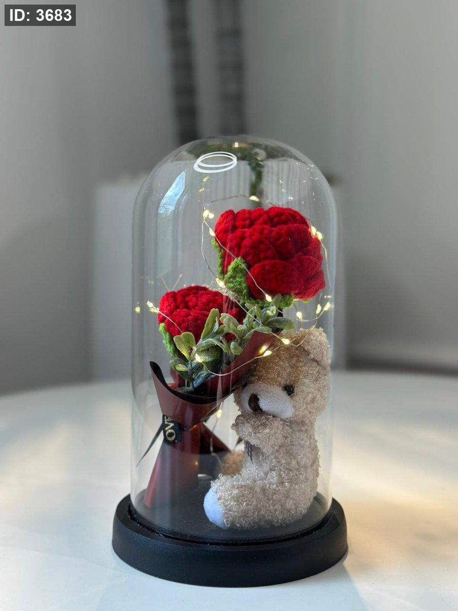تحفة ورد زجاج عريض مع دب