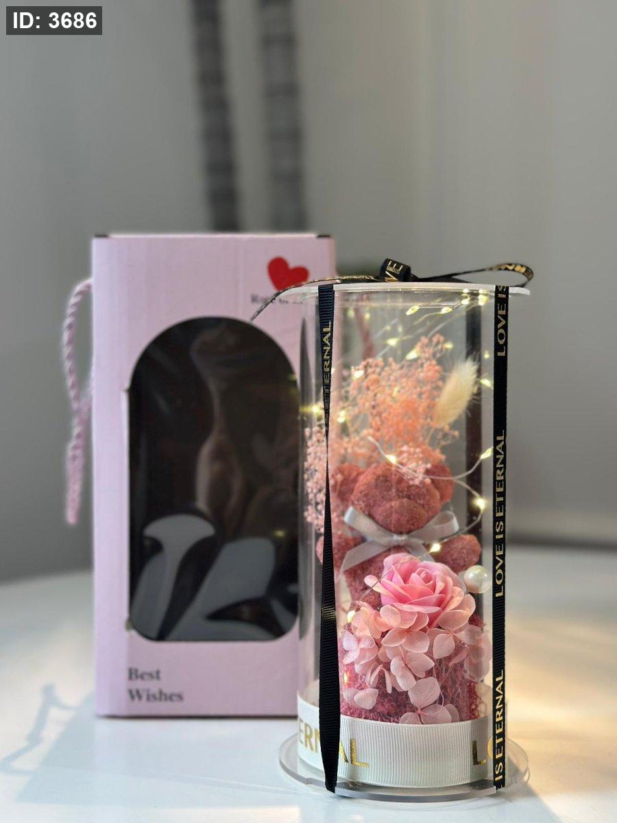 تحفة زجاج (ورد شكل دب) مع لولو & اضاءة