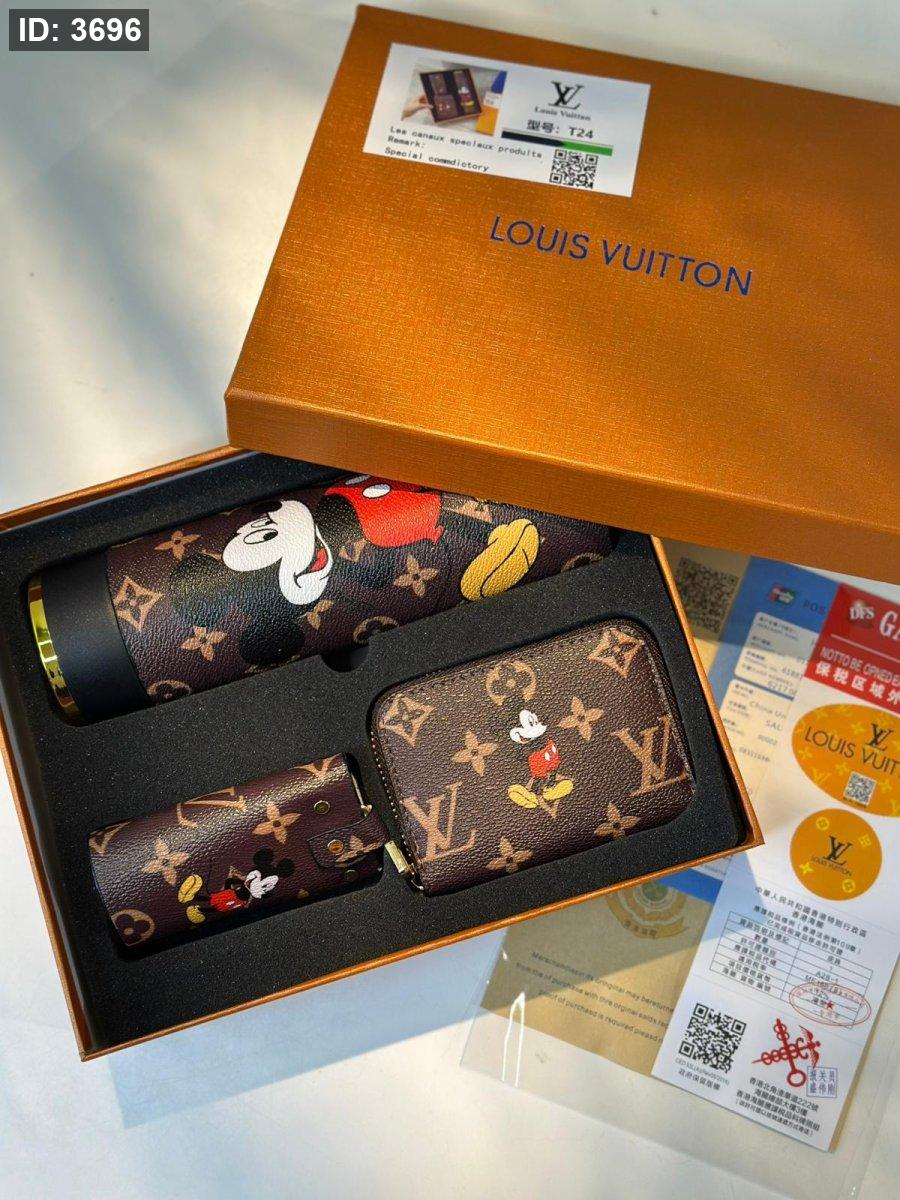 طقم ثيرموس مع مدالية وجزدان ميكي LV بني