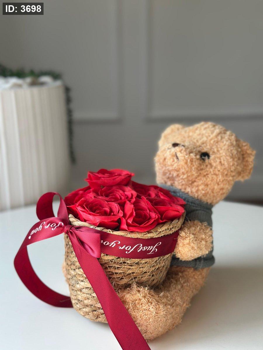 دب بني حامل باقة ورد