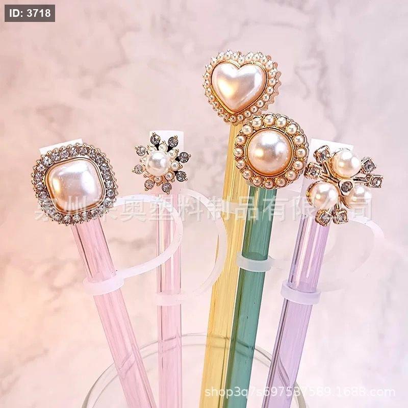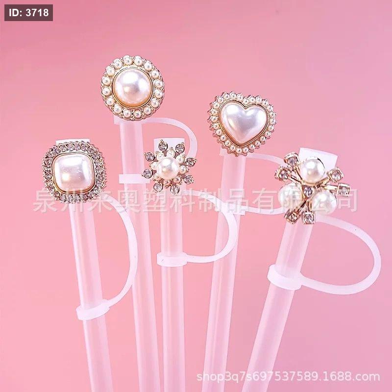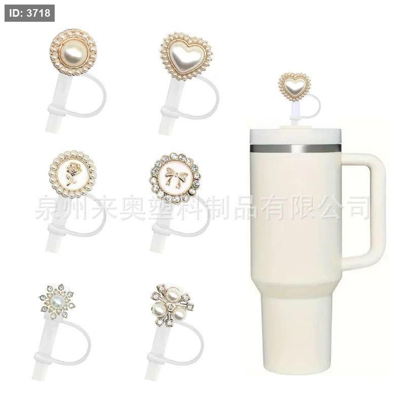 جلدة اكسسوار للكاسات قلوب / وردة ببيونه مع ستراس (طقم 10 قطع)