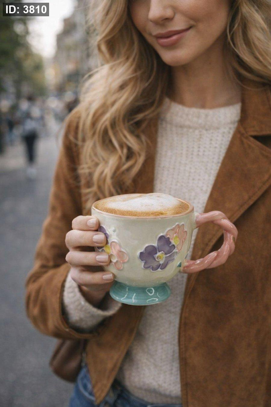 فنجان هاند ميد ورد أخضر (5)