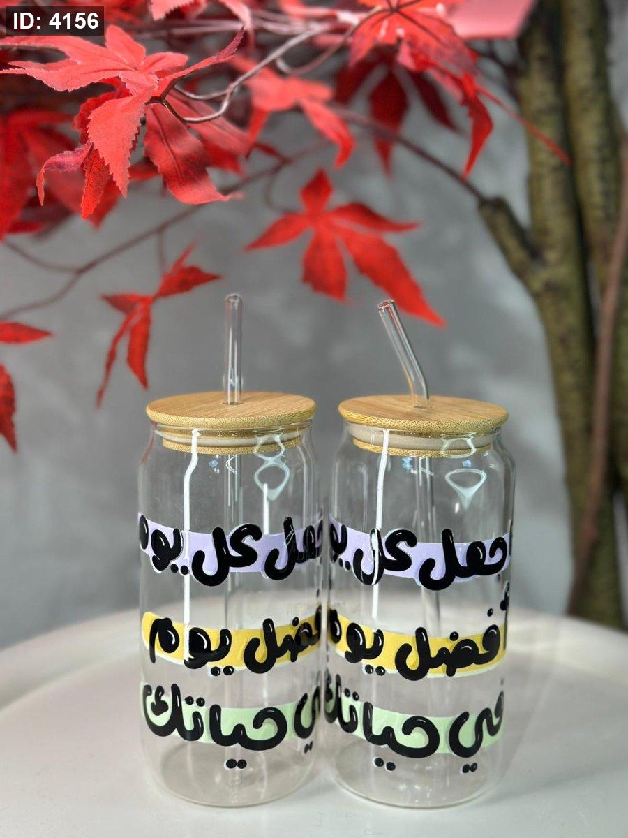 كاسة شفاف مع مصاصة اجعل كل يوم افضل في حياتك