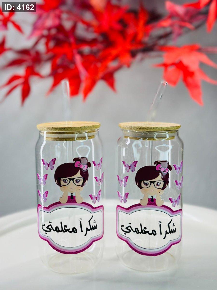 كاسة شفاف مع مصاصة شكرا معلمتي