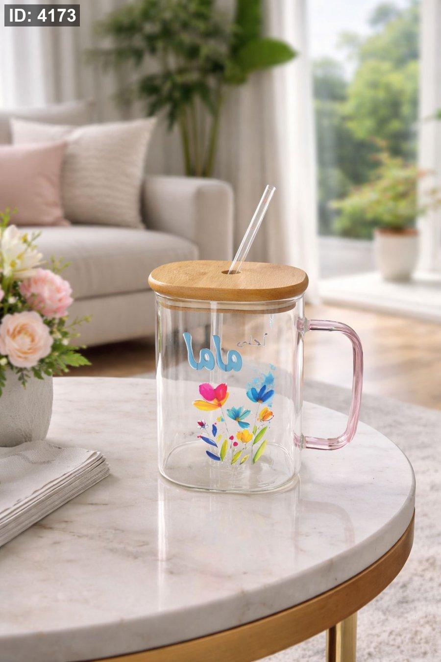 كاسة شفاف مع مصاصة مربع احلى ماما مع ورد
