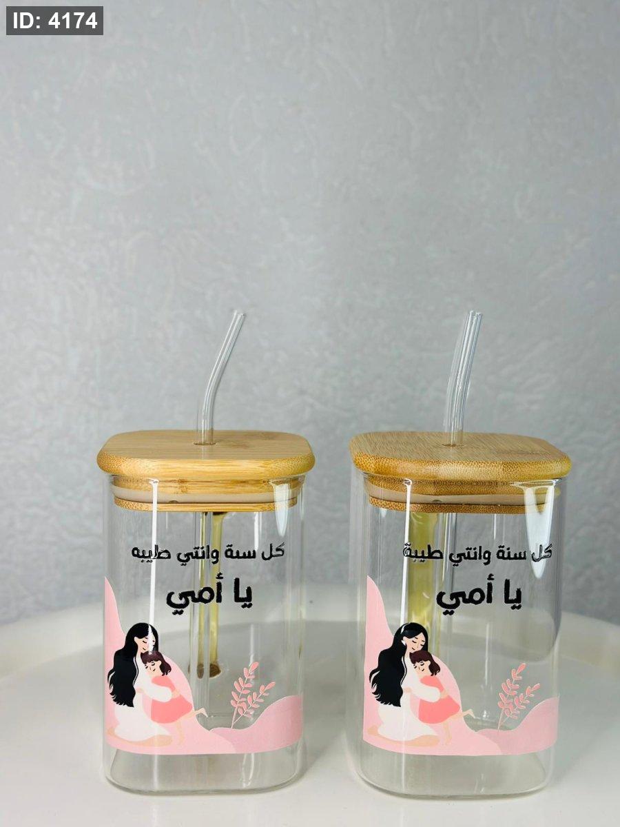 كاسة شفاف مع مصاصة مربع كل سنة وانتي طيبة يا امي