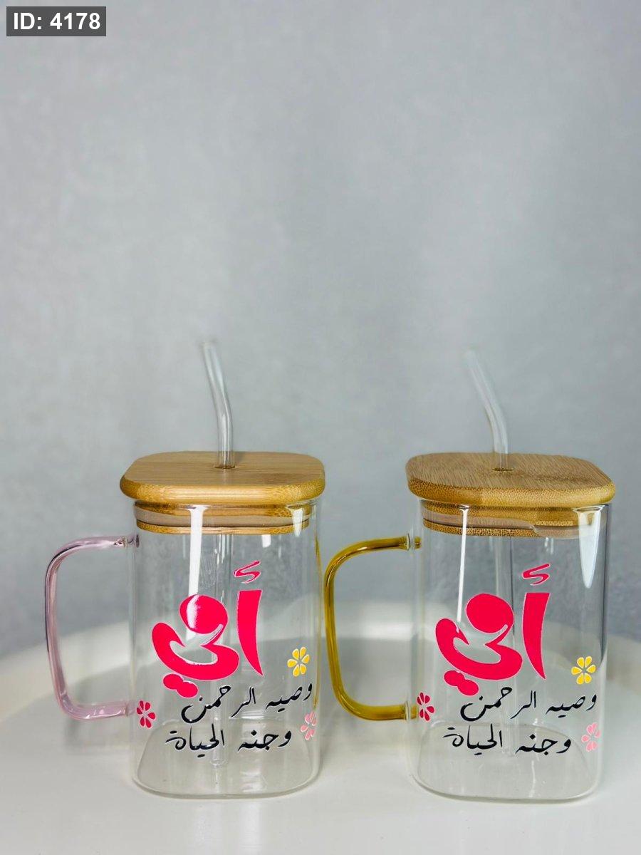 كاسة شفاف مع مصاصة مربع أمي هي وصية الرحمن
