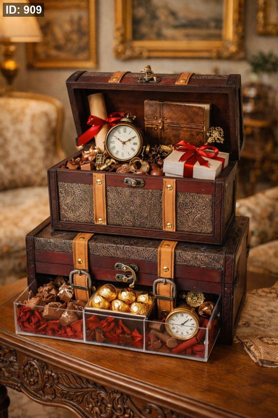 صندوق خشب تركي طقم قطعتين مستطيل مزخرف